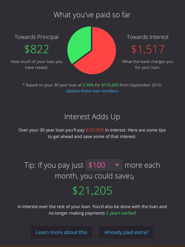 A breakdown of principal and interest paid