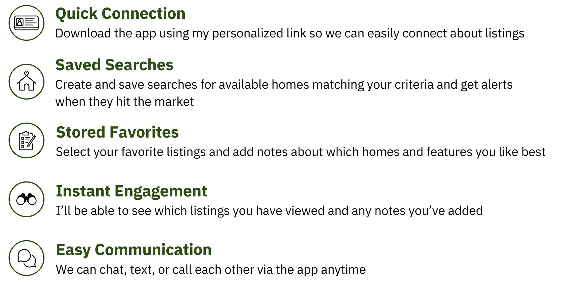 But don't worry, we have another great resource for you. By using this app for your home search, it makes it super easy to share your favorite houses and any notes directly with us. No more back-and-forth texting – just a smooth, hassle-free home search.